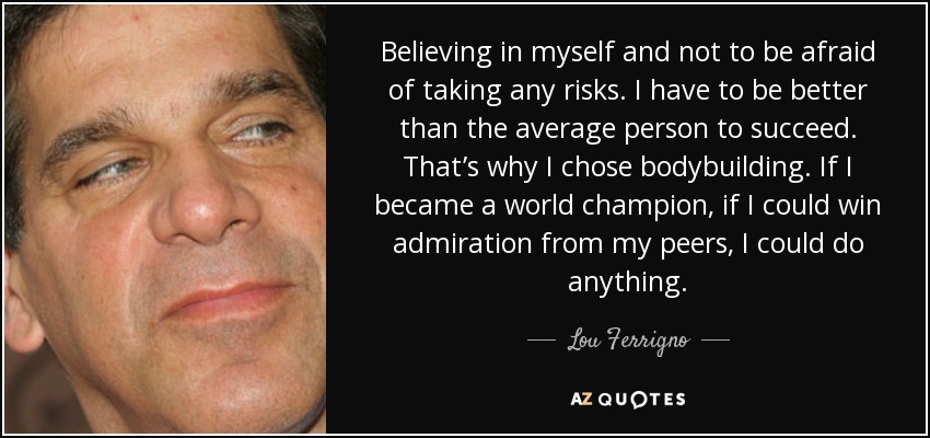 Believing in myself and not to be afraid of taking any risks. I have to be better than the average person to succeed. That’s why I chose bodybuilding. If I became a world champion, if I could win admiration from my peers, I could do anything.