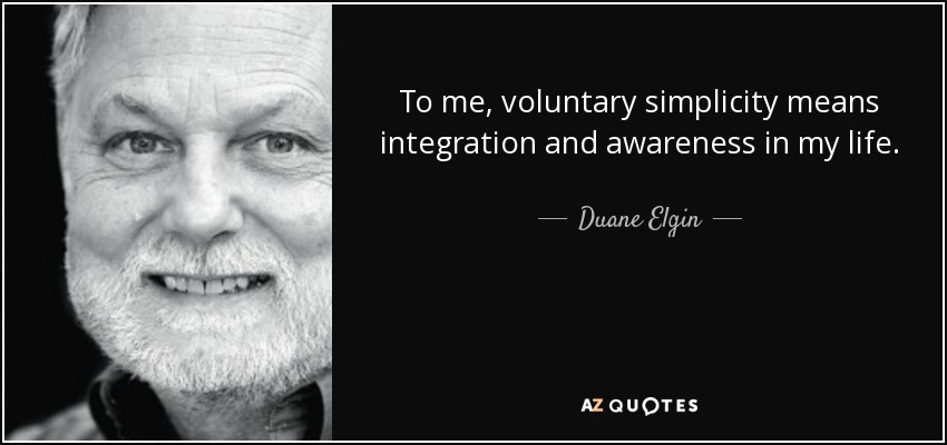 To me, voluntary simplicity means integration and awareness in my life.