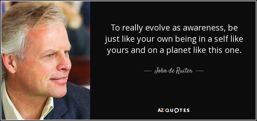 To really evolve as awareness, be just like your own being in a self like yours and on a planet like this one.