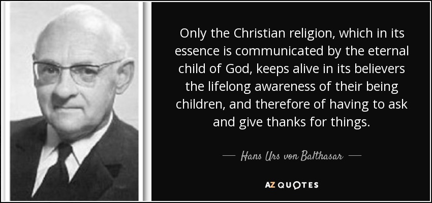 Only the Christian religion, which in its essence is communicated by the eternal child of God, keeps alive in its believers the lifelong awareness of their being children, and therefore of having to ask and give thanks for things.