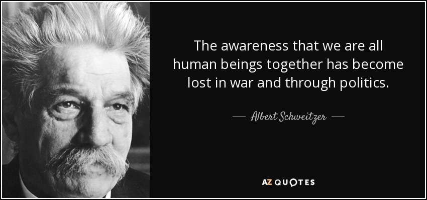 The awareness that we are all human beings together has become lost in war and through politics.