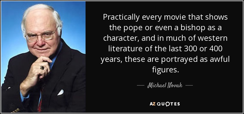 Practically every movie that shows the pope or even a bishop as a character, and in much of western literature of the last 300 or 400 years, these are portrayed as awful figures.
