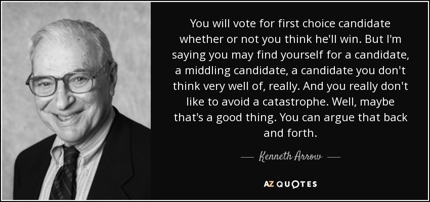 You will vote for first choice candidate whether or not you think he'll win. But I'm saying you may find yourself for a candidate, a middling candidate, a candidate you don't think very well of, really. And you really don't like to avoid a catastrophe. Well, maybe that's a good thing. You can argue that back and forth.