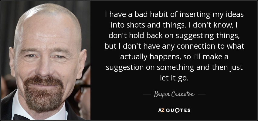 I have a bad habit of inserting my ideas into shots and things. I don't know, I don't hold back on suggesting things, but I don't have any connection to what actually happens, so I'll make a suggestion on something and then just let it go.