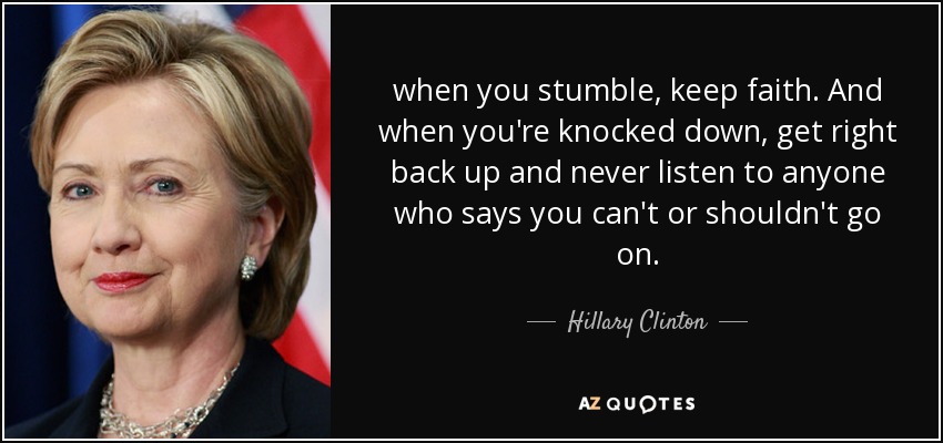 when you stumble, keep faith. And when you're knocked down, get right back up and never listen to anyone who says you can't or shouldn't go on.