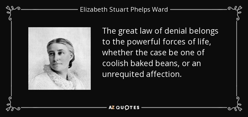 The great law of denial belongs to the powerful forces of life, whether the case be one of coolish baked beans, or an unrequited affection.