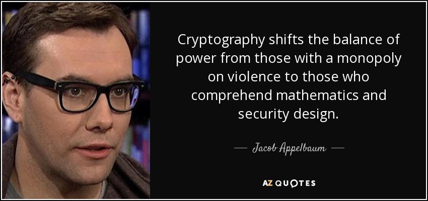 Cryptography shifts the balance of power from those with a monopoly on violence to those who comprehend mathematics and security design.