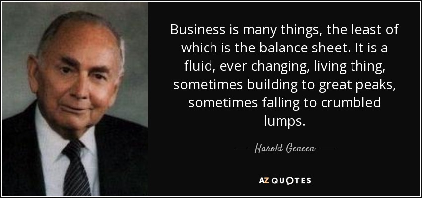 Business is many things, the least of which is the balance sheet. It is a fluid, ever changing, living thing, sometimes building to great peaks, sometimes falling to crumbled lumps.