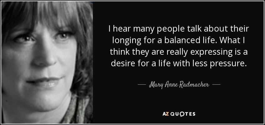 I hear many people talk about their longing for a balanced life. What I think they are really expressing is a desire for a life with less pressure.