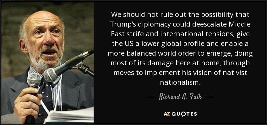 We should not rule out the possibility that Trump's diplomacy could deescalate Middle East strife and international tensions, give the US a lower global profile and enable a more balanced world order to emerge, doing most of its damage here at home, through moves to implement his vision of nativist nationalism.