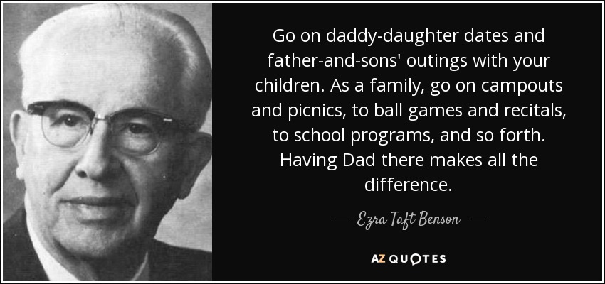 Go on daddy-daughter dates and father-and-sons' outings with your children. As a family, go on campouts and picnics, to ball games and recitals, to school programs, and so forth. Having Dad there makes all the difference.