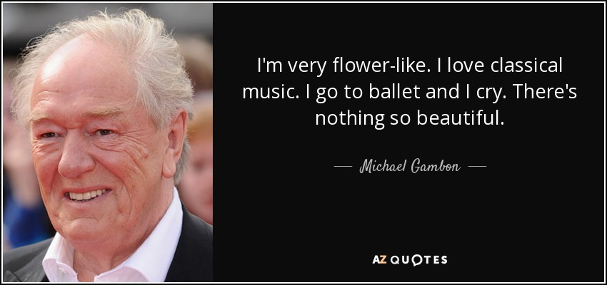 I'm very flower-like. I love classical music. I go to ballet and I cry. There's nothing so beautiful.