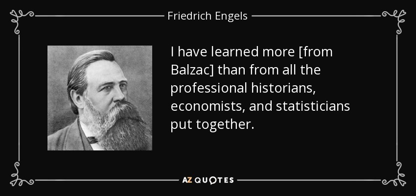 I have learned more [from Balzac] than from all the professional historians, economists, and statisticians put together.