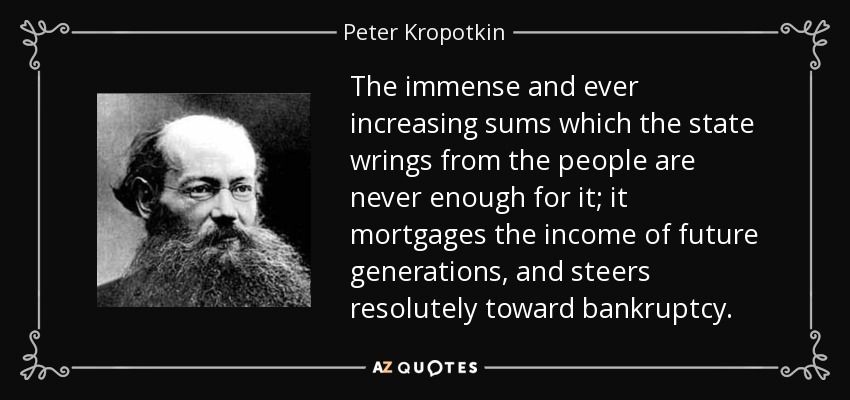 The immense and ever increasing sums which the state wrings from the people are never enough for it; it mortgages the income of future generations, and steers resolutely toward bankruptcy.