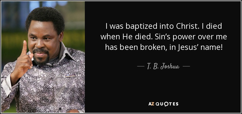 I was baptized into Christ. I died when He died. Sin’s power over me has been broken, in Jesus’ name!