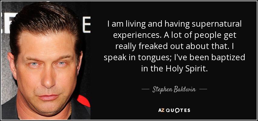 I am living and having supernatural experiences. A lot of people get really freaked out about that. I speak in tongues; I've been baptized in the Holy Spirit.