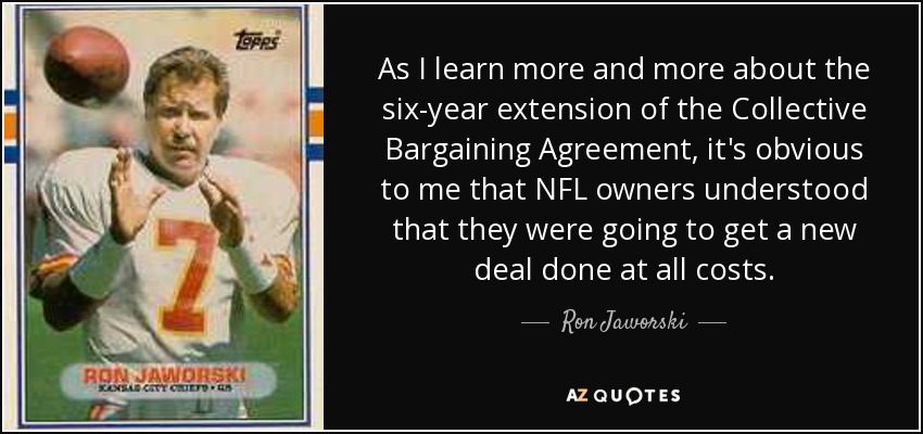 As I learn more and more about the six-year extension of the Collective Bargaining Agreement, it's obvious to me that NFL owners understood that they were going to get a new deal done at all costs.