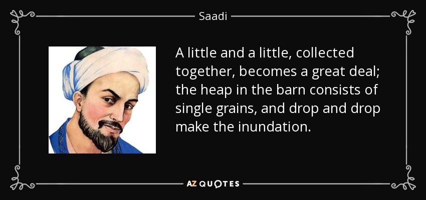 A little and a little, collected together, becomes a great deal; the heap in the barn consists of single grains, and drop and drop make the inundation.