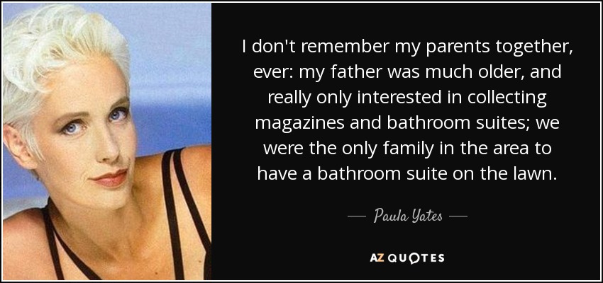 I don't remember my parents together, ever: my father was much older, and really only interested in collecting magazines and bathroom suites; we were the only family in the area to have a bathroom suite on the lawn.