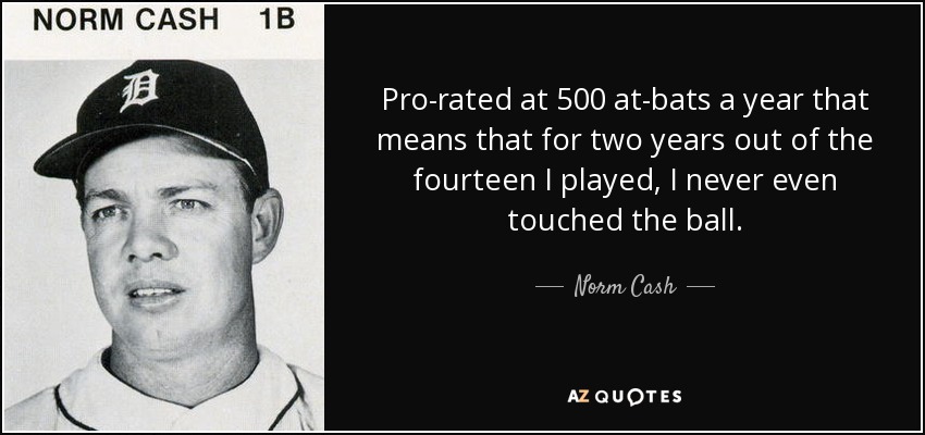 Pro-rated at 500 at-bats a year that means that for two years out of the fourteen I played, I never even touched the ball.