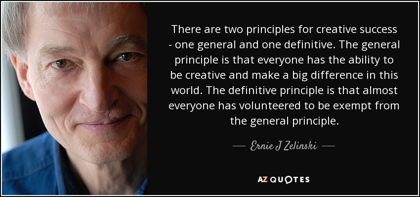 There are two principles for creative success - one general and one definitive. The general principle is that everyone has the ability to be creative and make a big difference in this world. The definitive principle is that almost everyone has volunteered to be exempt from the general principle.