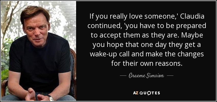 If you really love someone,' Claudia continued, 'you have to be prepared to accept them as they are. Maybe you hope that one day they get a wake-up call and make the changes for their own reasons.
