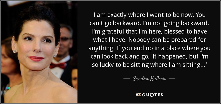I am exactly where I want to be now. You can't go backward. I'm not going backward. I'm grateful that I'm here, blessed to have what I have. Nobody can be prepared for anything. If you end up in a place where you can look back and go, 'It happened, but I'm so lucky to be sitting where I am sitting...'