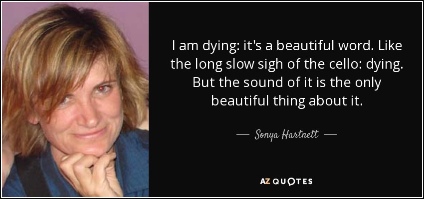 I am dying: it's a beautiful word. Like the long slow sigh of the cello: dying. But the sound of it is the only beautiful thing about it.