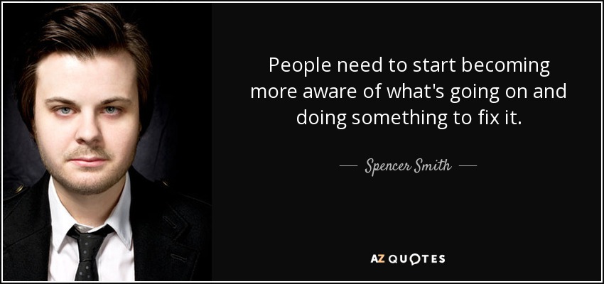 People need to start becoming more aware of what's going on and doing something to fix it.