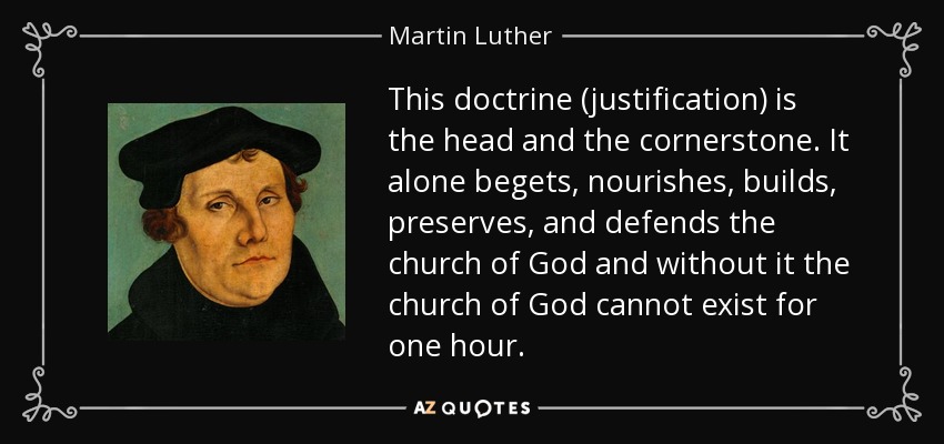 This doctrine (justification) is the head and the cornerstone. It alone begets, nourishes, builds, preserves, and defends the church of God and without it the church of God cannot exist for one hour.