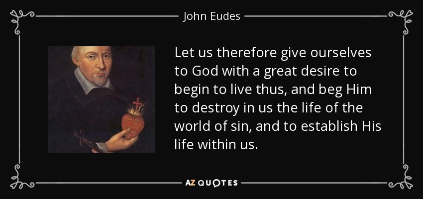 Let us therefore give ourselves to God with a great desire to begin to live thus, and beg Him to destroy in us the life of the world of sin, and to establish His life within us.