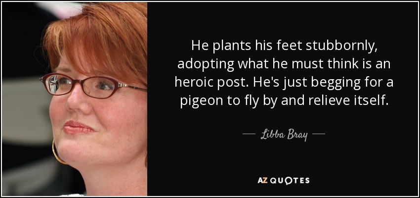 He plants his feet stubbornly, adopting what he must think is an heroic post. He's just begging for a pigeon to fly by and relieve itself.