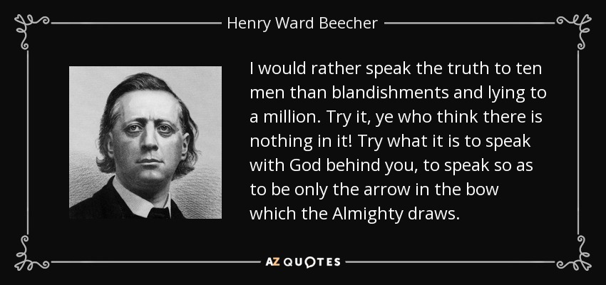 I would rather speak the truth to ten men than blandishments and lying to a million. Try it, ye who think there is nothing in it! Try what it is to speak with God behind you, to speak so as to be only the arrow in the bow which the Almighty draws.
