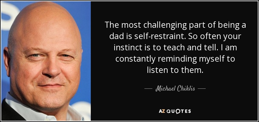 The most challenging part of being a dad is self-restraint. So often your instinct is to teach and tell. I am constantly reminding myself to listen to them.