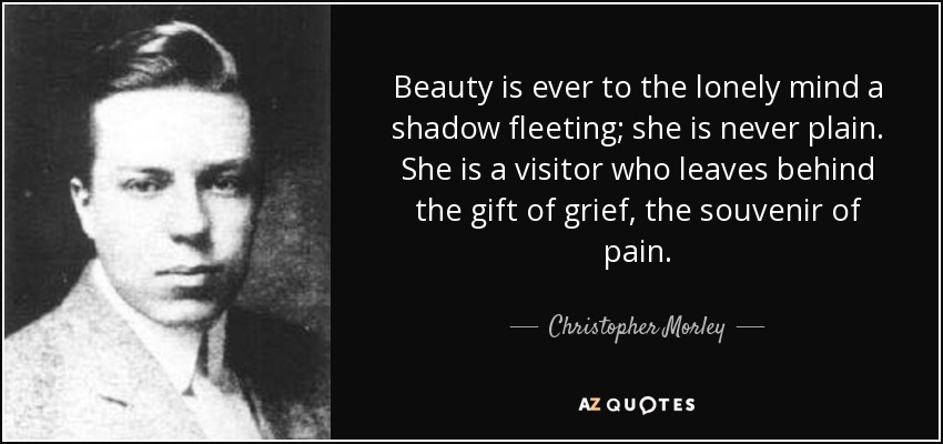 Beauty is ever to the lonely mind a shadow fleeting; she is never plain. She is a visitor who leaves behind the gift of grief, the souvenir of pain.