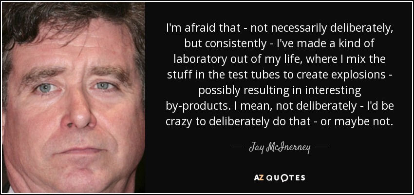 I'm afraid that - not necessarily deliberately, but consistently - I've made a kind of laboratory out of my life, where I mix the stuff in the test tubes to create explosions - possibly resulting in interesting by-products. I mean, not deliberately - I'd be crazy to deliberately do that - or maybe not.