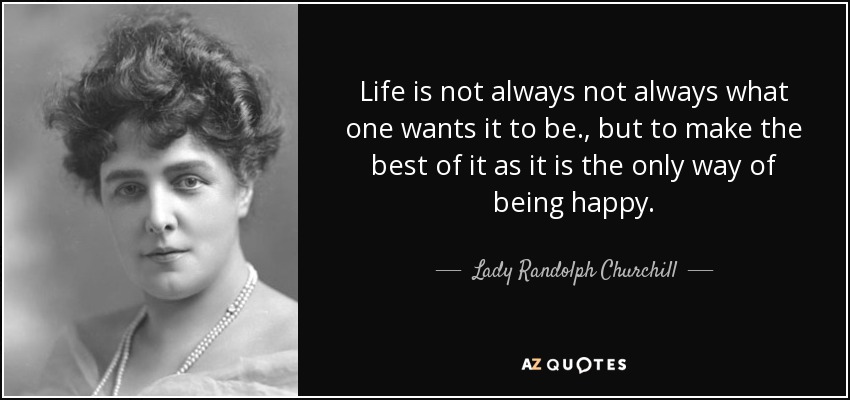 Life is not always not always what one wants it to be., but to make the best of it as it is the only way of being happy.