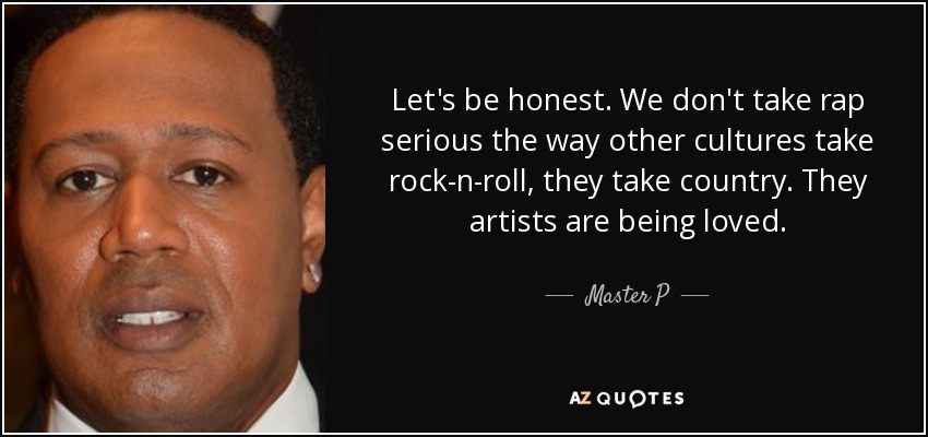 Let's be honest. We don't take rap serious the way other cultures take rock-n-roll, they take country. They artists are being loved.
