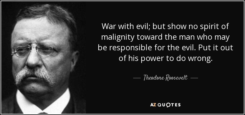 War with evil; but show no spirit of malignity toward the man who may be responsible for the evil. Put it out of his power to do wrong.