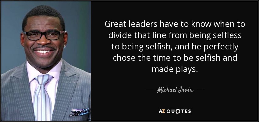 Great leaders have to know when to divide that line from being selfless to being selfish, and he perfectly chose the time to be selfish and made plays.