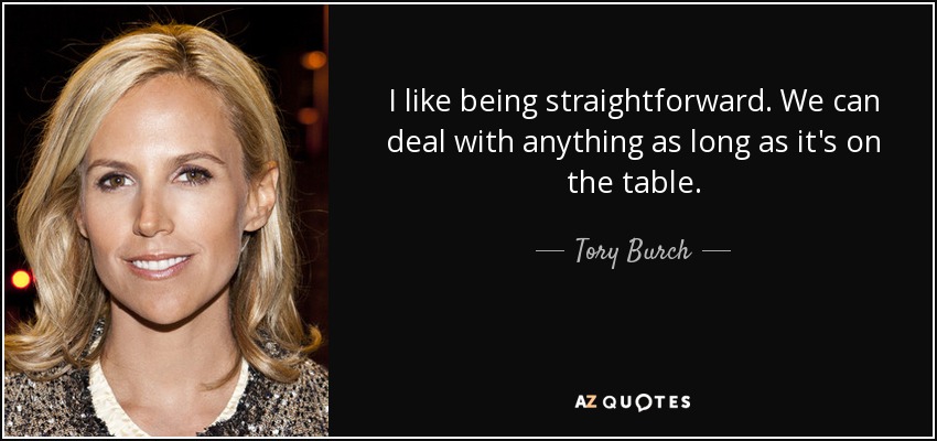 I like being straightforward. We can deal with anything as long as it's on the table.