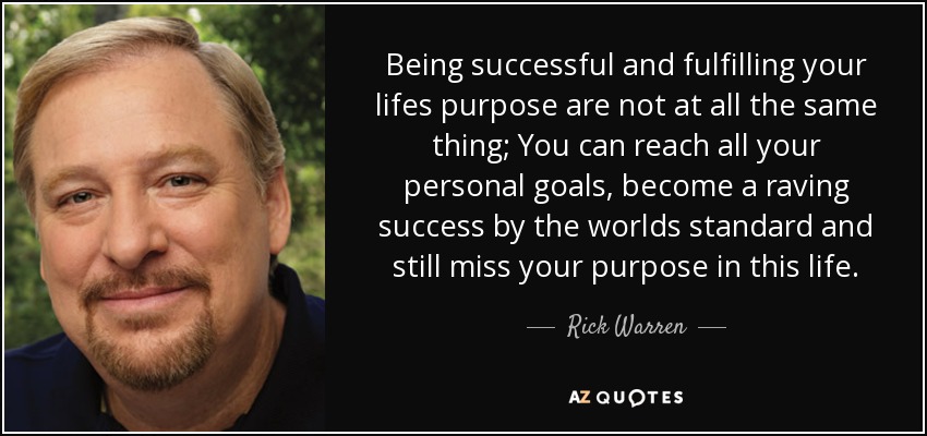 Being successful and fulfilling your lifes purpose are not at all the same thing; You can reach all your personal goals, become a raving success by the worlds standard and still miss your purpose in this life.