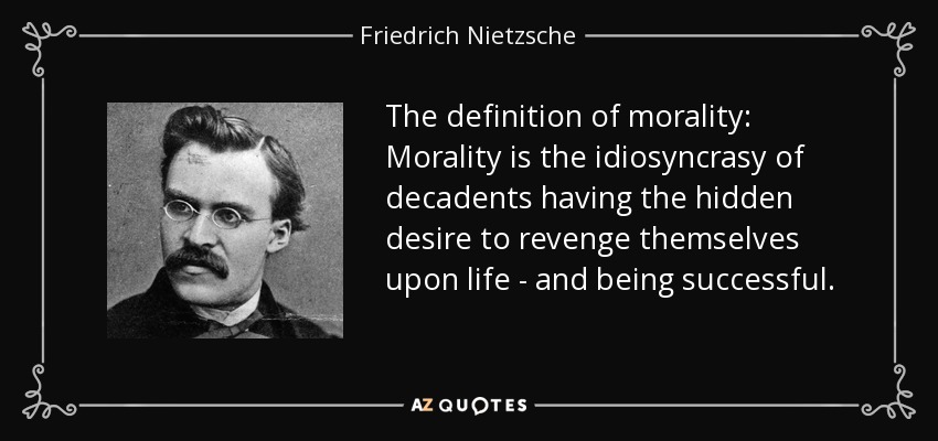 The definition of morality: Morality is the idiosyncrasy of decadents having the hidden desire to revenge themselves upon life - and being successful.