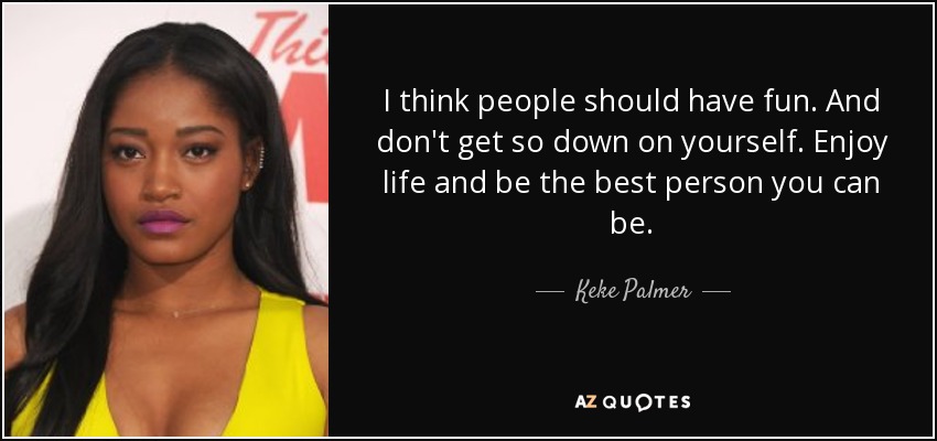 I think people should have fun. And don't get so down on yourself. Enjoy life and be the best person you can be.