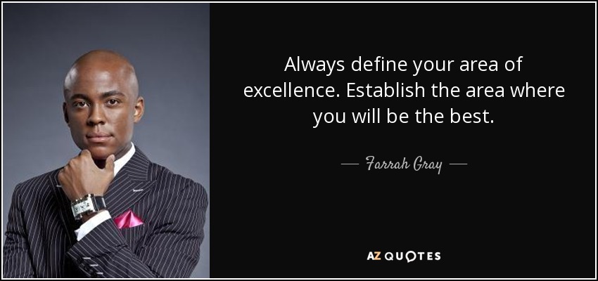 Always define your area of excellence. Establish the area where you will be the best.