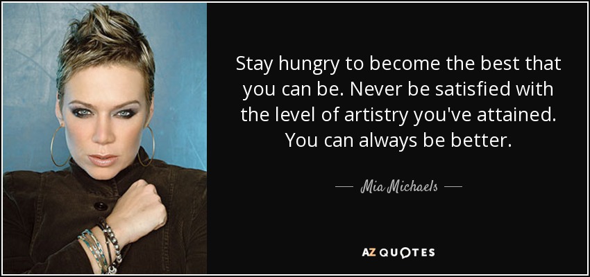 Stay hungry to become the best that you can be. Never be satisfied with the level of artistry you've attained. You can always be better.
