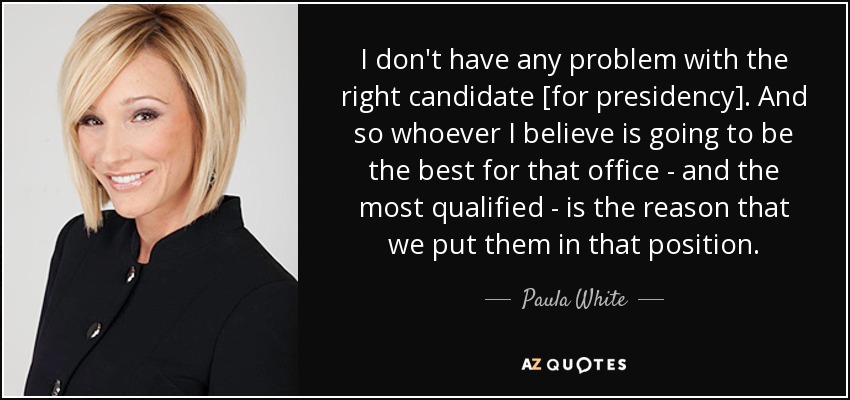 I don't have any problem with the right candidate [for presidency]. And so whoever I believe is going to be the best for that office - and the most qualified - is the reason that we put them in that position.