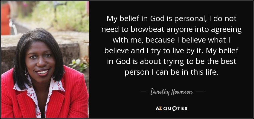 My belief in God is personal, I do not need to browbeat anyone into agreeing with me, because I believe what I believe and I try to live by it. My belief in God is about trying to be the best person I can be in this life.