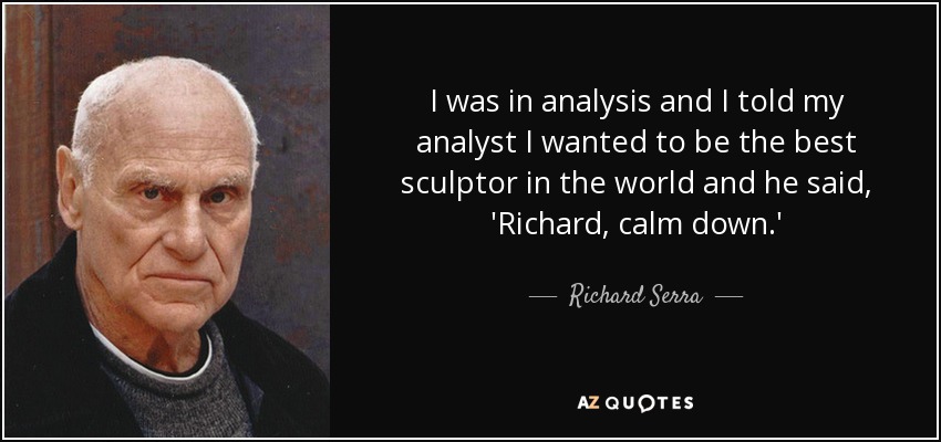 I was in analysis and I told my analyst I wanted to be the best sculptor in the world and he said, 'Richard, calm down.'
