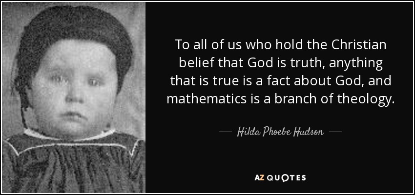 To all of us who hold the Christian belief that God is truth, anything that is true is a fact about God, and mathematics is a branch of theology.